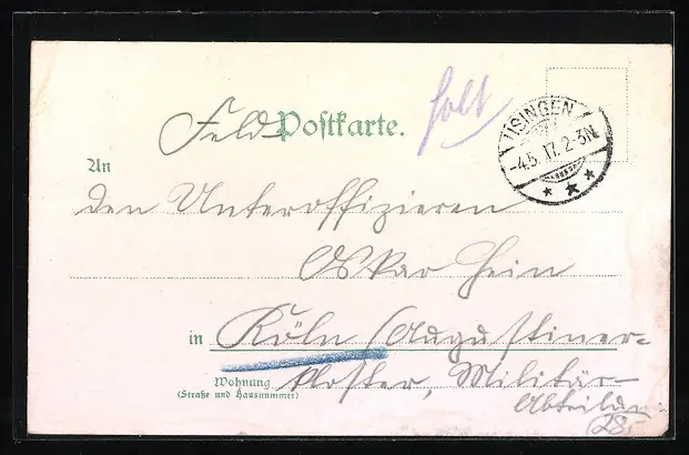 gelaufen 1917, Eckknick re. oben, Ecken bestoßen, guter Zustand