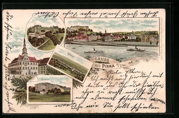 Lithographie Pirna, Panorama, Sonnenstein, Kaserne