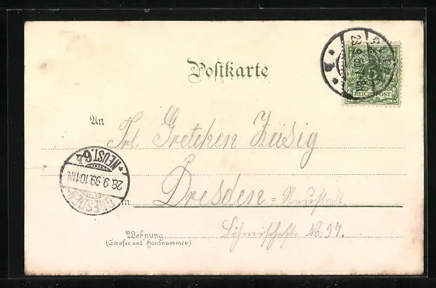 gelaufen 1899, Eckknick li. unten, guter Zustand