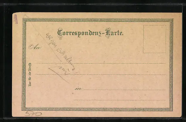 Personenbezogene Daten auf der Rückseite der Karte wurden durch blauen Textmarker unkenntlich gemacht. Die blauen Stellen sind auf die Vorderseite durchgeweicht und wirken sich negativ auf das Postkartenfoto aus