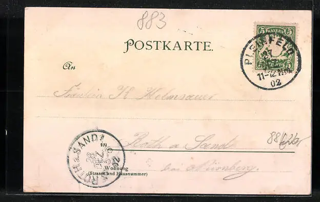 gelaufen 1902, Eckknicke unten, guter Zustand