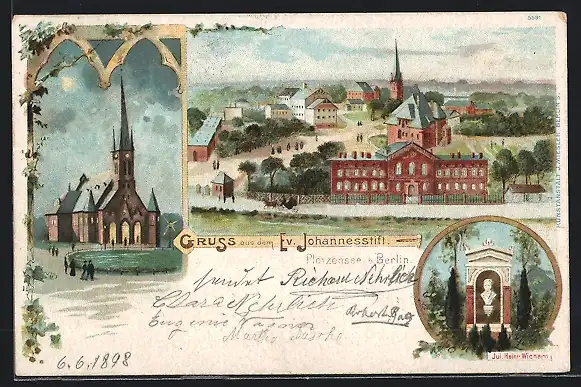 Lithographie Plötzensee b. Berlin, Ev. Johannesstift