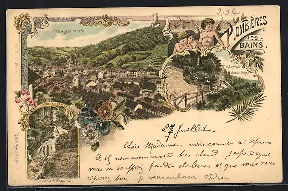 Lithographie Plombières les Bains, Ortsansicht, Chapelle Saint Joseph