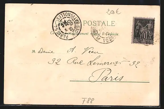 Personenbezogene Daten auf der Rückseite der Karte wurden durch blauen Textmarker unkenntlich gemacht. Die blauen Stellen sind auf die Vorderseite durchgeweicht und wirken sich negativ auf das Postkartenfoto aus