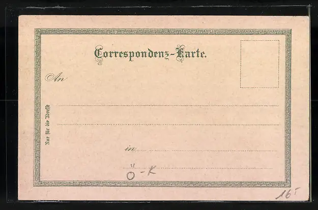 Personenbezogene Daten auf der Rückseite der Karte wurden durch blauen Textmarker unkenntlich gemacht. Die blauen Stellen sind auf die Vorderseite durchgeweicht und wirken sich negativ auf das Postkartenfoto aus