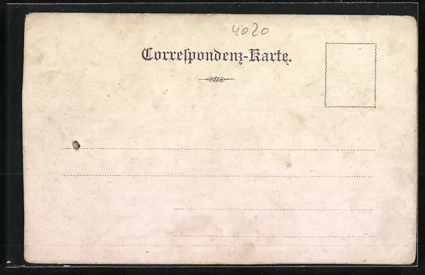 Personenbezogene Daten auf der Rückseite der Karte wurden durch blauen Textmarker unkenntlich gemacht. Die blauen Stellen sind auf die Vorderseite durchgeweicht und wirken sich negativ auf das Postkartenfoto aus