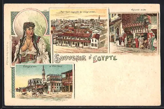 Lithographie Port Said, Village arabe, Epicerie arabe