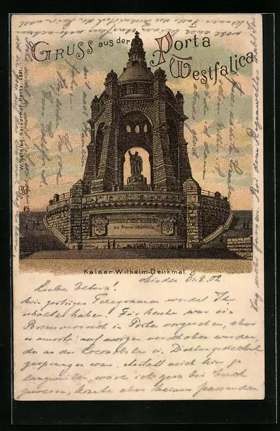 Lithographie Porta Westfalica, Kaiser Wilhelm-Denkmal