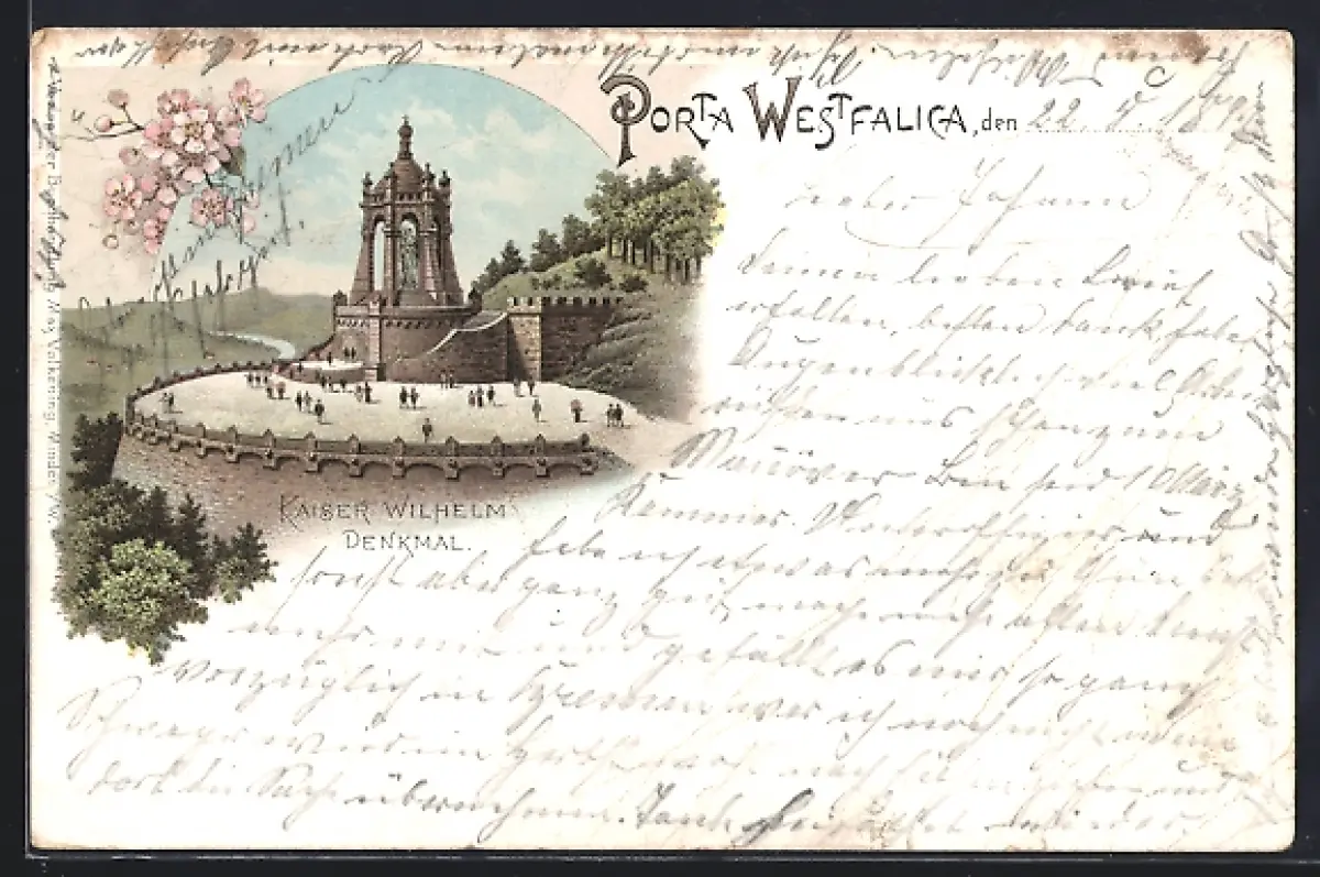 Lithographie Porta Westfalica, Kaiser Wilhelm-Denkmal