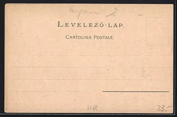Personenbezogene Daten auf der Rückseite der Karte wurden durch blauen Textmarker unkenntlich gemacht. Die blauen Stellen sind auf die Vorderseite durchgeweicht und wirken sich negativ auf das Postkartenfoto aus