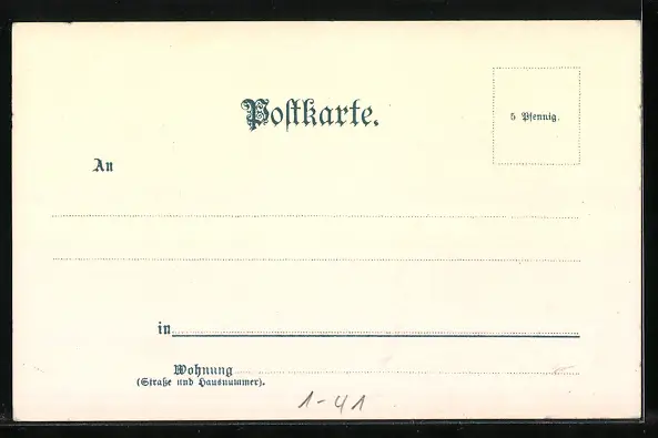 Personenbezogene Daten auf der Rückseite der Karte wurden durch blauen Textmarker unkenntlich gemacht. Die blauen Stellen sind auf die Vorderseite durchgeweicht und wirken sich negativ auf das Postkartenfoto aus