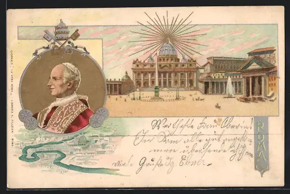 Lithographie Portrait von Papst Leo XIII., Petersplatz