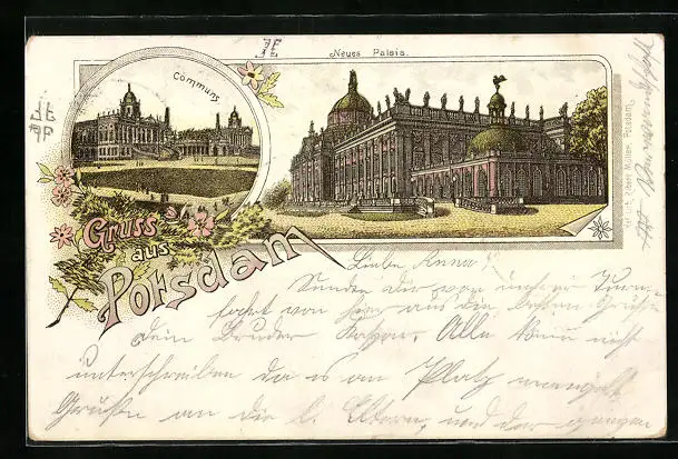 Lithographie Potsdam, Neues Palais, Communs