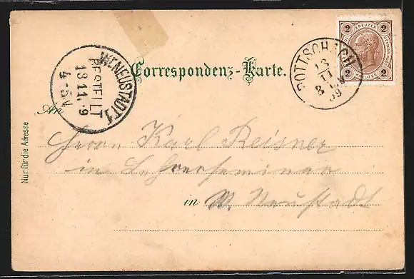 gelaufen 1899, geklebter Einriss re. oben, guter Zustand