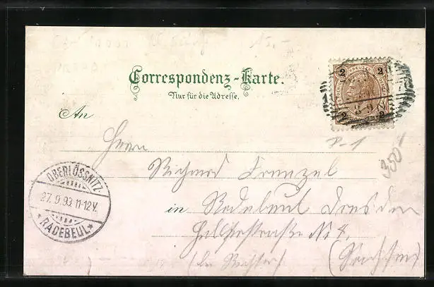 gelaufen 1899, Einriss re. unten, guter Zustand