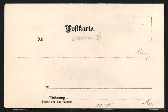 Personenbezogene Daten auf der Rückseite der Karte wurden durch blauen Textmarker unkenntlich gemacht. Die blauen Stellen sind auf die Vorderseite durchgeweicht und wirken sich negativ auf das Postkartenfoto aus