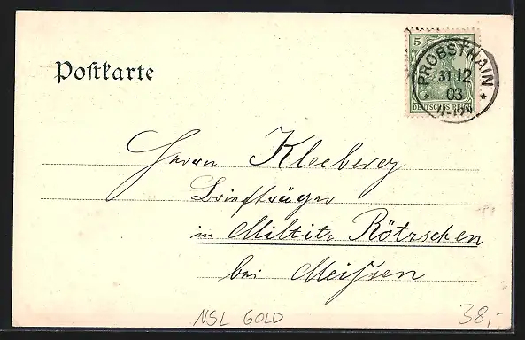 gelaufen 1903, Eckknicke li., Stempelspur, guter Zustand