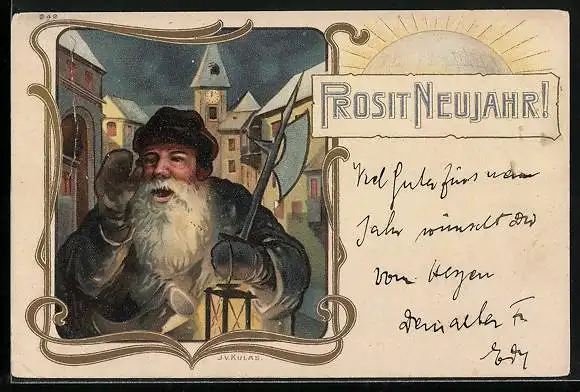 Lithographie Prosit Neujahr, Nachtwächter