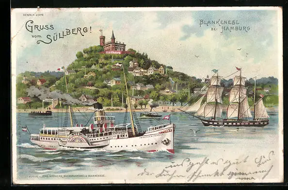 Lithographie Raddampfer Prinzessin Heinrich auf dem Wasser