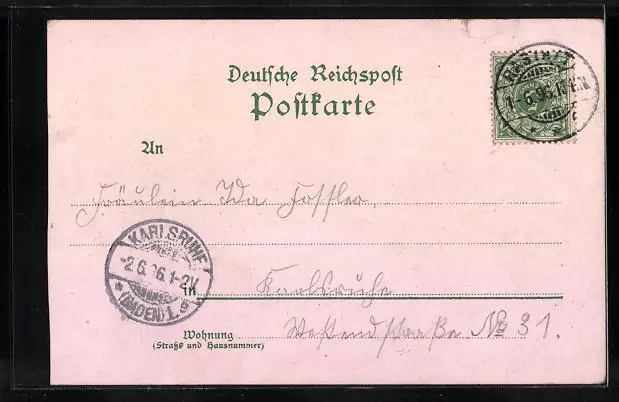 gelaufen 1896, Kleiner Einriss oben li., guter Zustand