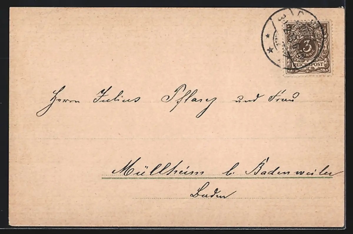 gelaufen 1903, Eckknicke li. oben und re. unten, Bugspur li. unten, guter Zustand