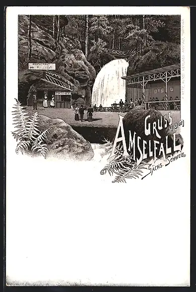 Lithographie Rathen /Sächs. Schweiz, Restaurant am Amselfall