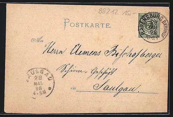 gelaufen 1898, Eckknick re. unten, guter Zustand