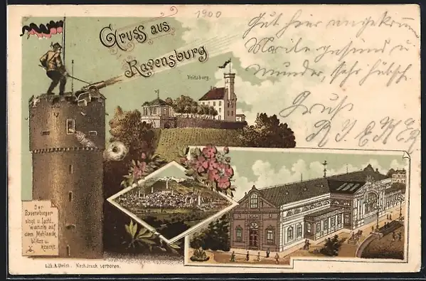 Lithographie Ravensburg, Veitsburg und Ortspanorama