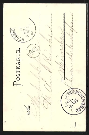 gelaufen 1899, Briefmarke entfernt, Stecknadellöcher oben u. unten mittig, guter Zustand