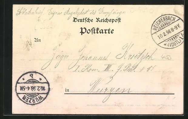 gelaufen 1898 als Feldpost, Eckknick li. oben, guter Zustand