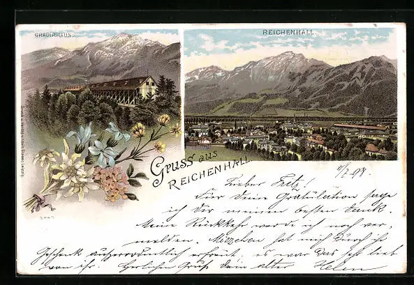 Lithographie Reichenhall, Gesamtansicht, Gradirhaus