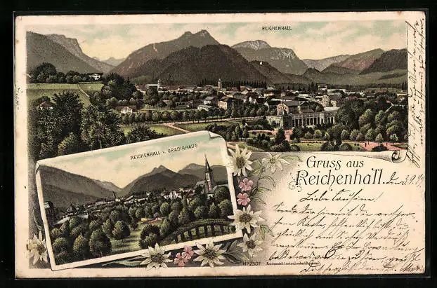 Lithographie Reichenhall, Totalansicht mit Kirche