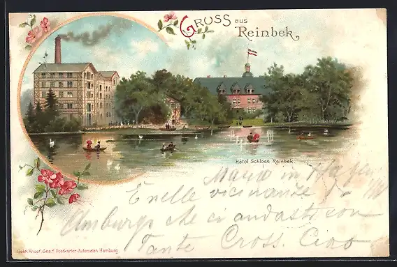 Lithographie Reinbek, Totalansicht vom Hotel Schloss Reinbek