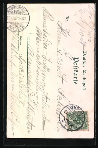 gelaufen 1897, Stempelspur, Bugspur unten, guter Zustand
