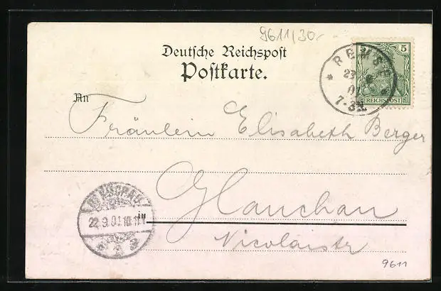 gelaufen 1901, Abriebspur u. kl. Einriss li. Mitte, guter Zustand