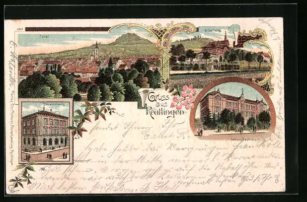 Lithographie Reutlingen, Totalansicht mit Silberburg