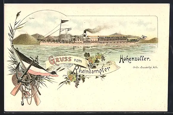Lithographie Rheindampfer Hohenzoller in Fahrt