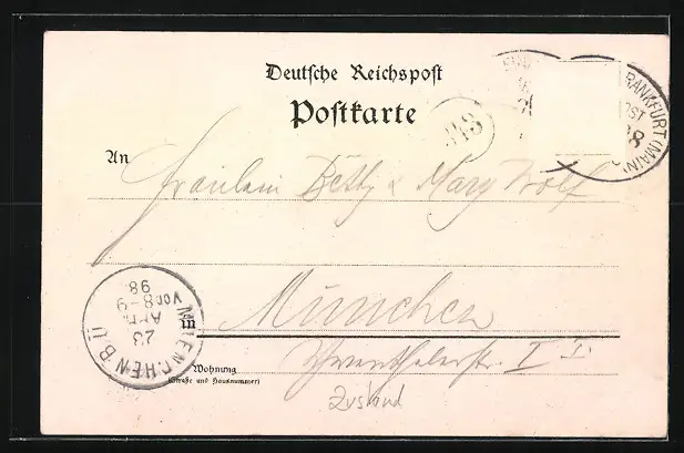 gelaufen 1898, Briefmarke entfernt, rückseitig Oberflächenschaden, guter Zustand