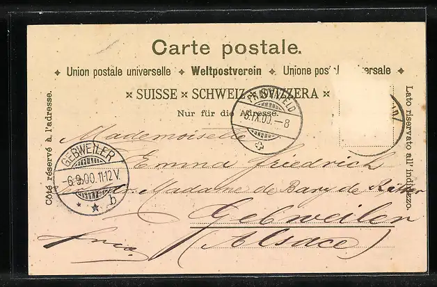 gelaufen 1900, Briefmarke entfernt, rückseitig Oberflächenschaden, guter Zustand