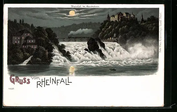 Lithographie Rheinfall, Rheinfall bei Mondschein