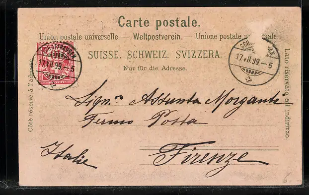 gelaufen 1899, rückseitig Oberflächenschaden, guter Zustand