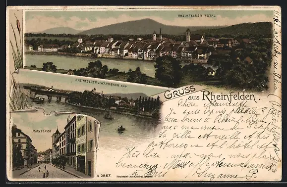 Lithographie Rheinfelden, Marktgasse & Totalansicht