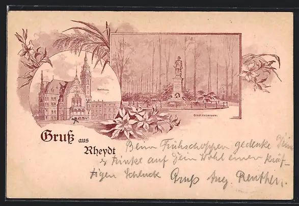 Lithographie Rheydt, Rathaus, Städtischer Kaiserpark