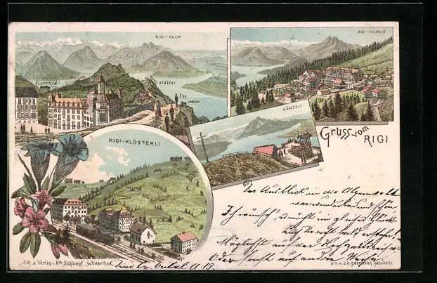 Lithographie Rigi, Rigi-Kaltbad, Rigi-Känzeli, Rigi-Klösterli