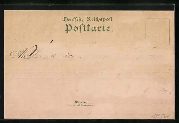 Personenbezogene Daten auf der Rückseite der Karte wurden durch blauen Textmarker unkenntlich gemacht. Die blauen Stellen sind auf die Vorderseite durchgeweicht und wirken sich negativ auf das Postkartenfoto aus