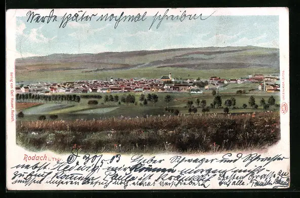 Lithographie Rodach i. Thür., Panoramansicht der Stadt