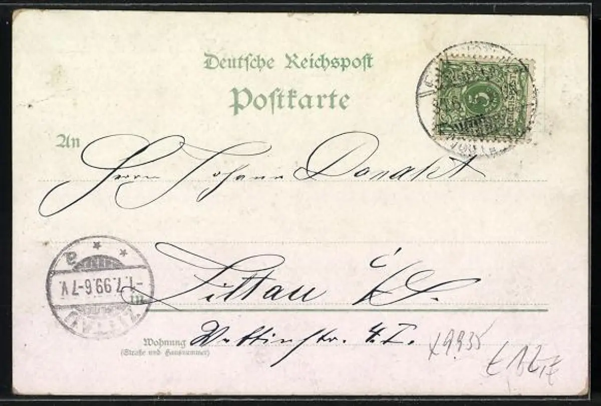 gelaufen 1899, Kante bestoßen oben mittig, Stecknadelloch oben u. mittig re, guter Zustand