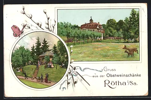 Lithographie Rötha, Gasthaus Obstweinschänke