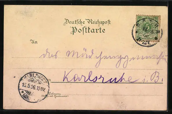 gelaufen 1896, Eckknicke oben, guter Zustand