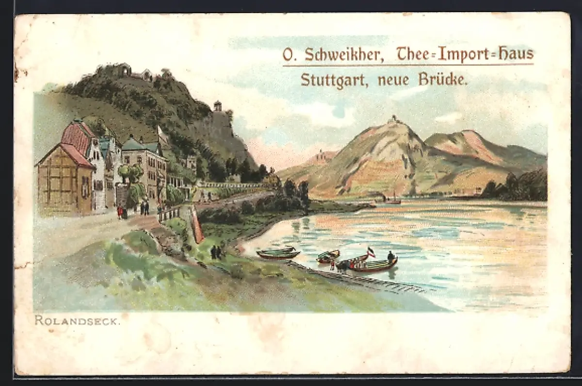 Lithographie Rolandseck, Gebäude am Seeufer